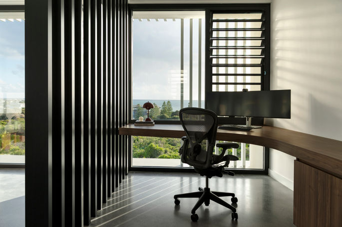 Furniture and styling were carefully curated to complement the architecture, favoring Australian-designed and made pieces. Signature elements include a custom dining table and coffee table, created in collaboration with Nathan Day, blending craftsmanship with functionality and style.